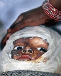 -By PRIYANKA KAKODKAR in Gujarat First came the mobs--burning pillaging, murdering and raping in front of the eyes of these hapless children. Then came displacement-after their homes were torched. Suddenly, family, friends and schools are a chimera. Dr R. Srinivasa Murthy, professor of psychiatry at the Bangalore-based National Institute of Mental Health and Neurosciences (NIMHANS), who visited some of the camps, found the children in a state of shock. "The trauma seen in children who survived the riots in Gujarat is similar to the trauma children suffered after the Bhopal gas tragedy, the Uttarkashi earthquake and the earthquake in the state." So they end up extremely prone to anxiety disorders, acute depression and stress. Possibly even worse. When the Ahmedabad-based NGO Centre For Development tried to involve the camp children in art classes, they ended up drawing burning houses and dead people. "There is a lot of anger among the children," says Mira Mehta of the centre. "You will see a lot of small, silent children playing around in the camps. They don't look rattled but they are badly affected inside." That's not hard to discover. A three year-old boy playing in the camp says occasionally: "Abba Ko mar diya. Goli, goli! (They killed my father. Bullet, Bullet!)". Counselling will be futile, say psychiatrists, as long as the carnage continues. "There is so much fear and anger among children and we can't even tell them that it is all over. Until it stops, how can they begin healing?" asks Sandhya Surendradas of the NGO Sanchetna's child survival project. CED Ref: Gujarat/children/children-nightmare.htm |