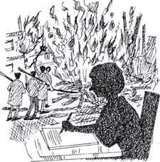 The report, carried just two days after Godhra, mentions the murder of Ram sevaks only once in the 450-word plus report. What is important is that Varadarajan, sitting in Delhi, makes readers 'doubtless' about the planning in the backlash while defending Godhra, the indefensible... CED Ref: Gujarat/media/Gujarat-burns.htm |