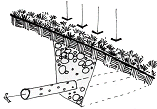 gravel encasing a perforated pipe. Stormwater treated by the soil bed