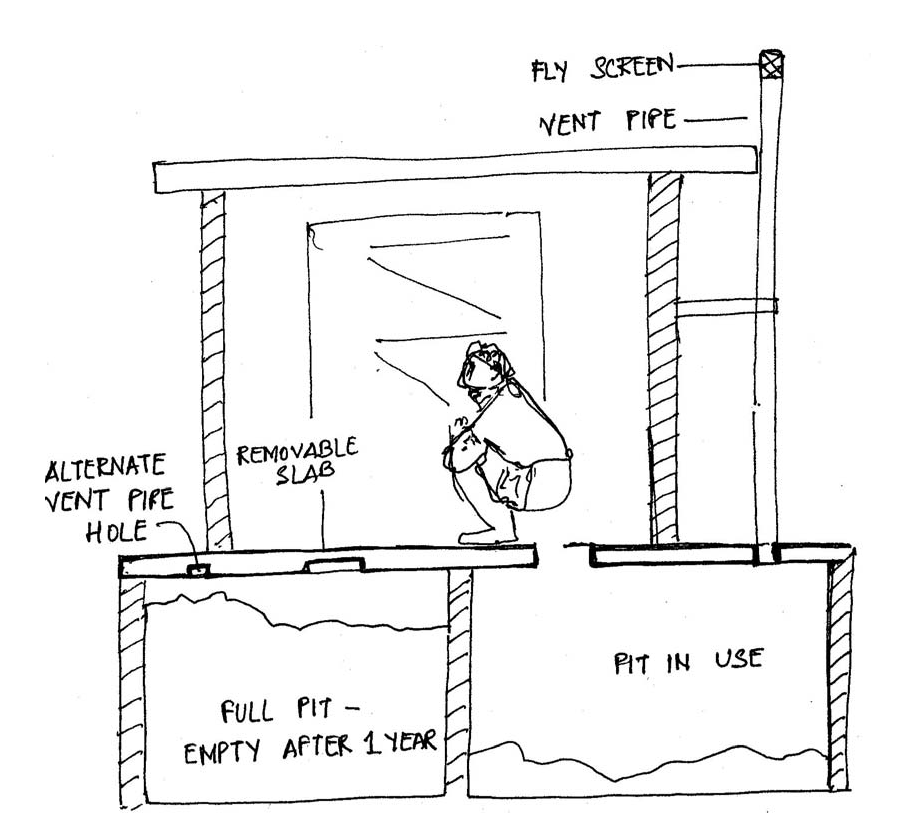 A dual pit model is also possible for both VIP and Pour-flush toilet, where pits are used alternatively click here to enlarge image