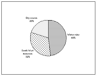 Nadu has 3 distinct periods of rainfall. It receives a little rainfall