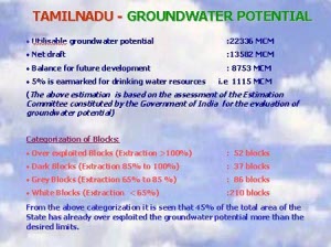 Tamilnadu, as many as 52 blocks have been classified as overexploited