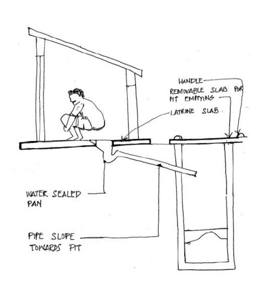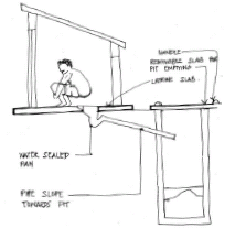 water seal against odour and insects. Excreta in the latrine pan is flushed
