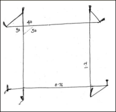 straight. Mark another point 30 cms from this mark. Measure 40 cms from the